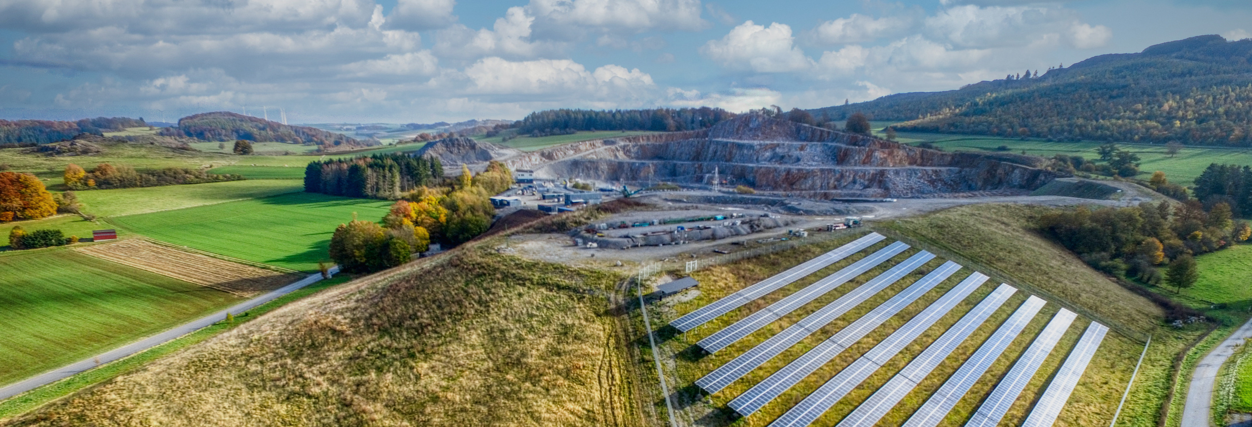 Ein besonders spannendes Projekt der Firma Spenner sticht nun hervor. Es handelt sich dabei um eine Photovoltaik-Anlage am Steinbruch in Brilon. Dort wird Kalkstein abgebaut und für die Herstellung von Branntkalk zum Standort nach Erwitte transportiert. Die Gewinnung von Kalkstein bedarf jedoch traditionell hoher Energieverbräuche, die vor allem für das Brechen des Kalksteins auf eine Korngröße von 25 – 75 mm benötigt wird. Bis ins Jahr 2019 wurden hierfür mobile Anlagen mit Dieseltreibstoff betrieben. Nun übernimmt eine moderne Sieb- und Brechanlage diesen Prozess, was zu einer enormen Effizienzsteigerung führt. Außerdem hat die neue Anlage ein deutlich moderneres Energiemanagement und wird  in Gänze mit Strom betrieben. Die Stromversorgung erfolgt seit August 2021 vollständig aus der hauseigenen PV-Anlage, die direkt am Südhang des Steinbruchs errichtet wurde. Das Unternehmen investierte in dieses nachhaltige Projekt 600.000 Euro und produziert mit der rund 8.000 Quadratmeter großen PV-Anlage etwa 750 kWp oder 660.000 kWh Strom im Jahr, was dem Jahresverbrauch von 165 Vier-Personen-Haushalten entspricht. Der von der neuen Sieb- und Brechanlage benötigte Strom von 510.000 kWh im Jahr wird somit in der Netto-Betrachtung vollständig von der dazugehörigen PV-Anlage gespeist. Der überschüssige Strom kann sogar in das Netz eingespeist werden, sodass der Steinbruch der Firma Spenner in Brilon zum Netto-Stromerzeuger geworden ist. Für den Fall, dass die PV-Anlage nicht genügend Strom für den Betrieb der Anlage produziert, wird Strom aus dem allgemeinen Netz zugekauft. Alles in Allem können durch die neue Maschine in Kombination mit der PV-Anlage jährlich etwa 100.000 Liter Diesel eingespart werden, was 265 Tonnen CO2 entspricht.
